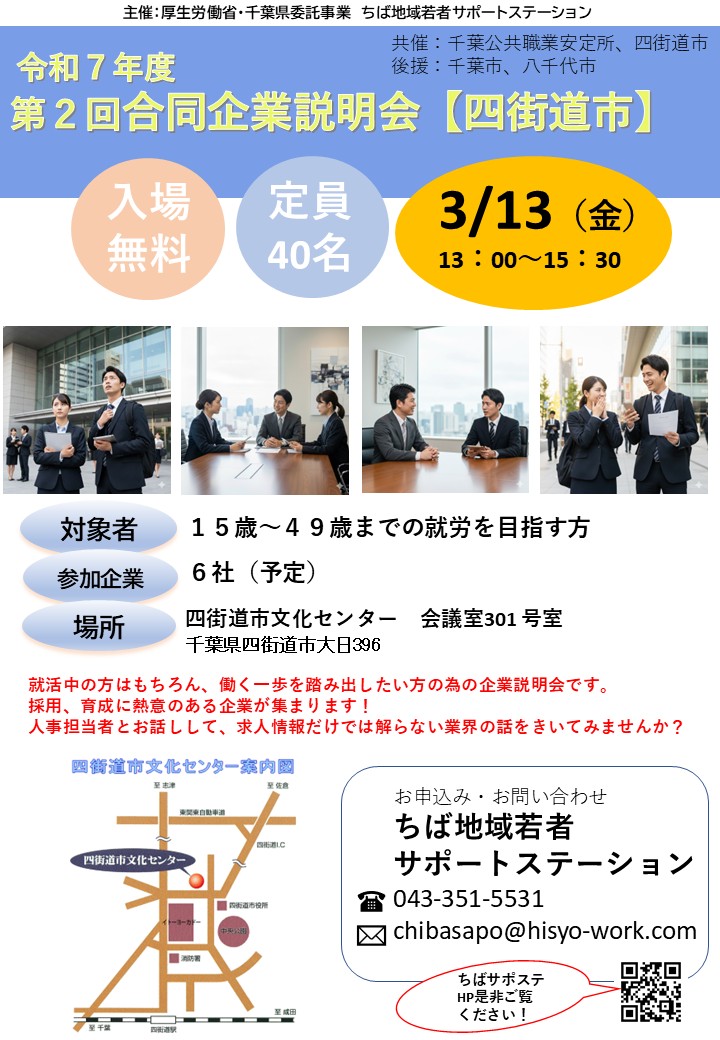 3/13(金)合同企業説明会in四街道市 開催します!!
