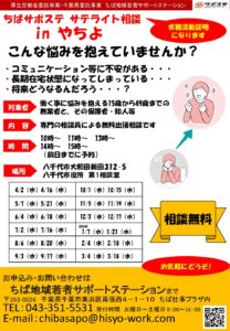 2025八千代サテライト_チラシ・ポスター イベント・プログラム新着記事 2/6(金)13:00~ふなサポ主催合同企業説明会開催のお知らせ ⛄冬季休所のお知らせ🎍 1月特別講座のお知らせ 🎍1月のプログラムが決まりました! ブログ新着記事 【なりたい姿を考える】特別講座開催いたしました!~プログラム通信 「自分を知ろう!自分に合った将来~自分を説明する」特別講座開催いたしました!~プログラム通信 新しい風!「声で広がる新しい自分」開講!~プログラム通信 ちばサポステについて「ChatGPTにブログを書いてもらったら…」