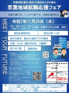 20251126京葉地域就職応援フェア イベント・プログラム新着記事 【職場見学のお知らせ】2026/1/14(水)13:00~ 佐川急便株式会社 様 【職場見学・説明会のお知らせ】12/23(火)10:00~、13:30~ JR千葉鉄道サービス株式会社 様 プログラム中止のお知らせ 12月特別講座のお知らせ ブログ新着記事 【なりたい姿を考える】特別講座開催いたしました!~プログラム通信 「自分を知ろう!自分に合った将来~自分を説明する」特別講座開催いたしました!~プログラム通信 新しい風!「声で広がる新しい自分」開講!~プログラム通信 ちばサポステについて「ChatGPTにブログを書いてもらったら…」