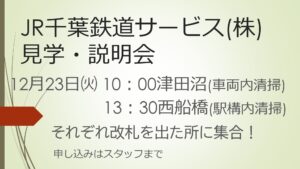 【職場見学・説明会のお知らせ】12/23(火)10:00~、13:30~ JR千葉鉄道サービス株式会社 様