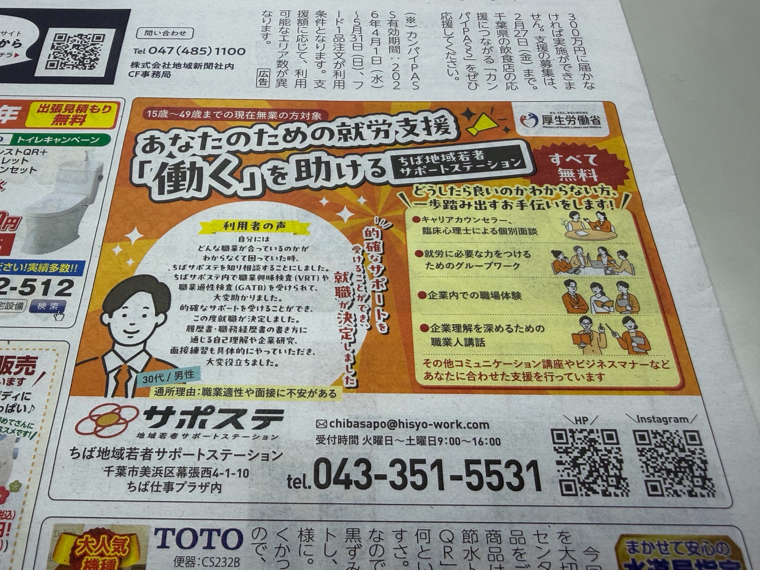 96A8702C-4AF0-4700-B830-95669CF1C7B5 イベント・プログラム新着記事 3/13(金)合同企業説明会in四街道市 開催します!! 3/7 (土)10:00~講演会のお知らせ! 2/21(土)10:00~家族向けセミナーを開催します! 2月の職業人講話/特別講座のお知らせ ブログ新着記事 【なりたい姿を考える】特別講座開催いたしました!~プログラム通信 「自分を知ろう!自分に合った将来~自分を説明する」特別講座開催いたしました!~プログラム通信 新しい風!「声で広がる新しい自分」開講!~プログラム通信 ちばサポステについて「ChatGPTにブログを書いてもらったら…」
